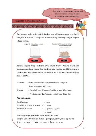 Dani akan memulai usaha biskuit. Ia akan menjual biskuit dengan berat bersih