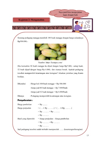 Jika kemudian 40 buah mangga itu dijual dengan harga Rp7.000,- setiap buah,