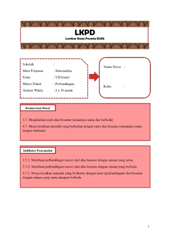 4.7.1. Menyelesaikan masalah yang berikatan dengan rasio (perbandingan) dua besaran
