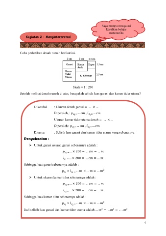 Jadi selisih luas garasi dan kamar tidur utama adalah … − … = . . . 2