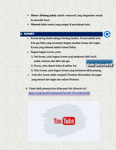 • Bagian-bagian komet, yaitu: