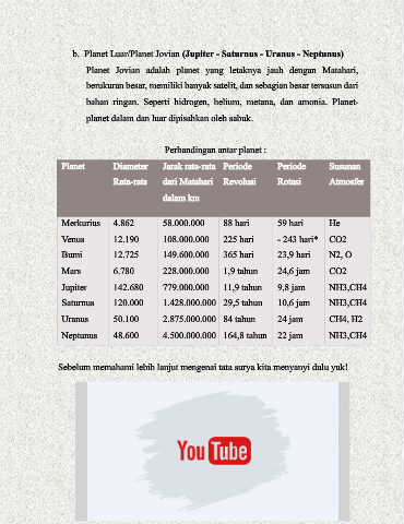 b. Planet Luar/Planet Jovian (Jupiter - Saturnus - Uranus - Neptunus)