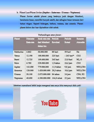 b. Planet Luar/Planet Jovian (Jupiter - Saturnus - Uranus - Neptunus)
