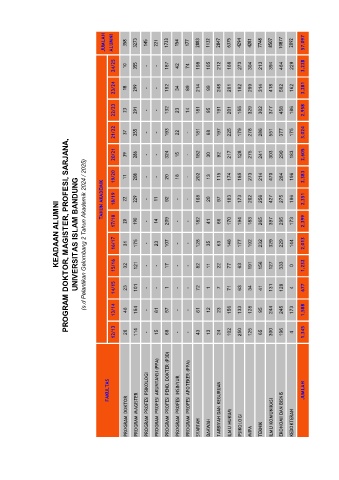 KEADAAN ALUMNI PROGRAM DOKTOR, MAGISTER, PROFESI, SARJANA, UNIVERSITAS ISLAM BANDUNG (s.d Pelantikan Gelombang 2 Tahun Akademik 2024 / 2025) 17/18 16/17 20 31 190 175 - - 14 23 209 107 - - - - 182 128 41 35 66 63 170 148 194 177 183 192 265 232 397 329 295 229 173 144 2.399 2.013
