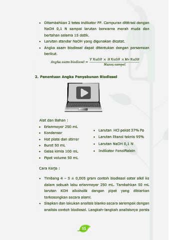 • Angka asam biodiesel dapat ditentukan dengan persamaan