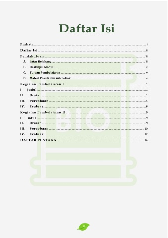 D. Materi Pokok dan Sub Pokok ............................................................................................... iv