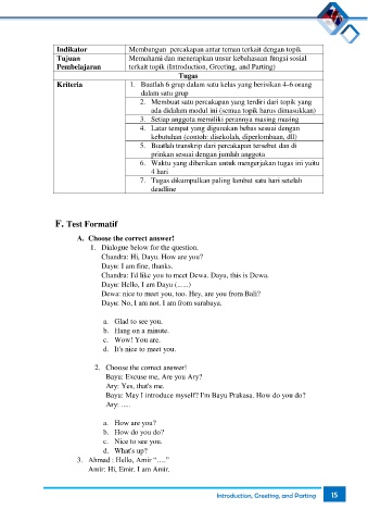 Pembelajaran terkait topik (Introduction, Greeting, and Parting)