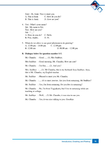 Mr. Chandra : .... (4) to meet you too. Are you from semarang, Mr Sudibyo?