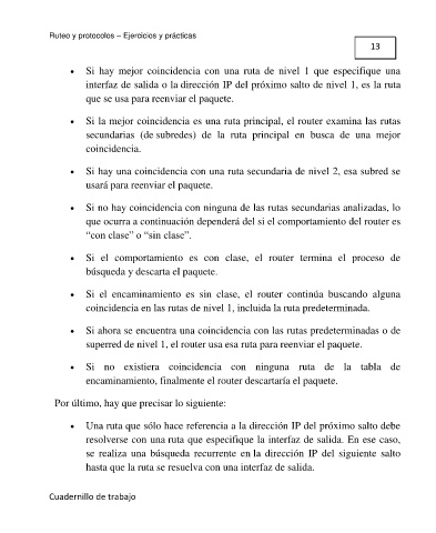 Si la mejor coincidencia es una ruta principal, el router examina las rutas Por ejemplo, si el destino de un paquete es el equipo con dirección 172.16.4.69