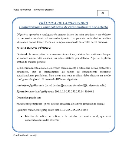 a) El enrutamiento estático, es creado manualmente a diferencia de los protocolos Ejemplo: router(config)#ip route 0.0.0.0 0.0.0.0 s0/1
