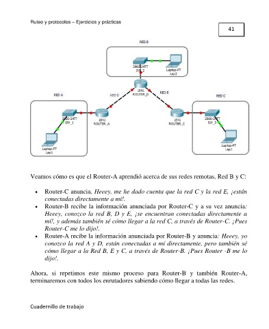 cómo llegar a la Red B, E y C, a través de Router-B. ¡Pues Router -B me lo