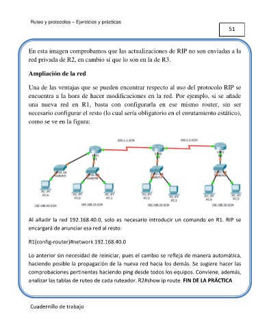 Al añadir la red 192.168.40.0, solo es necesario introducir un comando en R1. RIP se en particular, en este caso el valor máximo (255).