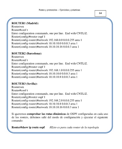 valor 1 en todas las redes que configuremos para OSPF. A continuación, se Si queremos comprobar las rutas dinámicas de OSPF configuradas en cada uno
