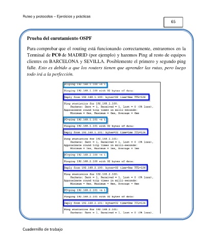 clientes en BARCELONA y SEVILLA. Posiblemente el primero y segundo ping la ruta (equipos va el tráfico TCP/IP) o podemos hacerlo desde el modo de