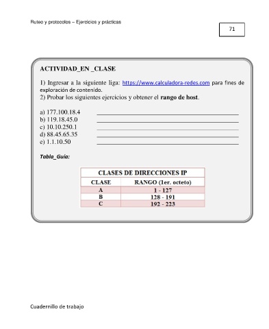 ACTIVIDAD_EN _CLASE Para calcular la dirección de red, debemos aplicar el operador AND. Esto sobre el