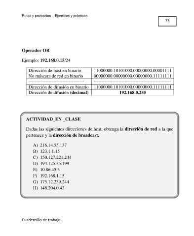 Ejemplo: 192.168.0.15/24 En esta práctica, se plantean algunos ejercicios sobre cálculo de subredes. Aunque