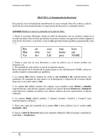 fusión de dos temas fundamentales: la organización de directorios y comandos básicos.
