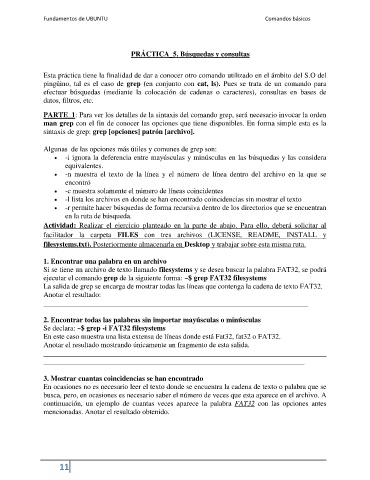 Si se tiene un archivo de texto llamado filesystems y se desea buscar la palabra FAT32, se podrá