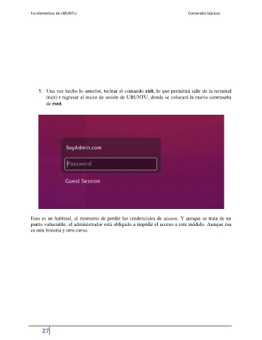 (raíz) t regresar al inicio de sesión de UBUNTU, donde se colocará la nueva contraseña