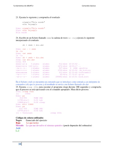 24. Escribe en un fichero llamado cmds la cadena de texto ls -la y ejecuta lo siguiente