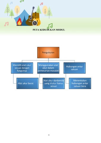 PETA KEDUDUKAN MODUL Pengukuran Memilih alat ukur Menggunakan alat Hubungan antar sesuai dengan ukur dalam satuan fungsinya pemecahan masalah Alat ukur danbenda Menentukan - Alat ukur berat yang diukur harus hubungan antar sesuai satuan bera iv
