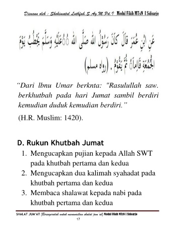 SHALAT JUM’AT [Bersegeralah untuk menunaikan shalat jum’at] Modul Fikih MTsN I Sidoarjo