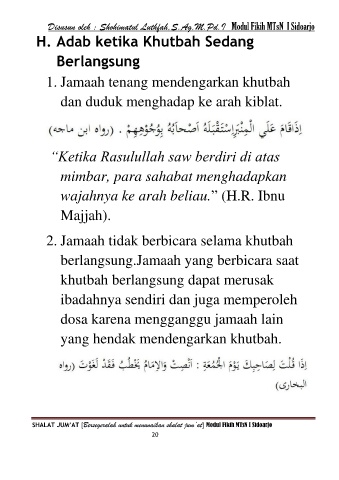 SHALAT JUM’AT [Bersegeralah untuk menunaikan shalat jum’at] Modul Fikih MTsN I Sidoarjo