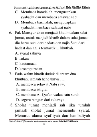 SHALAT JUM’AT [Bersegeralah untuk menunaikan shalat jum’at] Modul Fikih MTsN I Sidoarjo