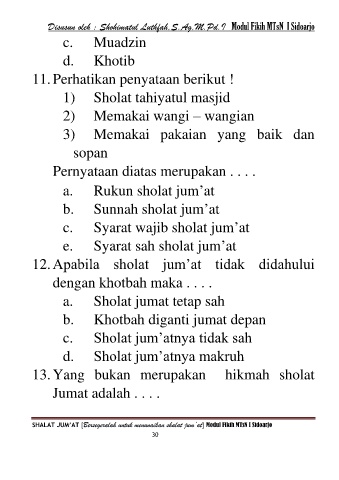 SHALAT JUM’AT [Bersegeralah untuk menunaikan shalat jum’at] Modul Fikih MTsN I Sidoarjo