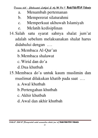 SHALAT JUM’AT [Bersegeralah untuk menunaikan shalat jum’at] Modul Fikih MTsN I Sidoarjo