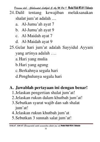 SHALAT JUM’AT [Bersegeralah untuk menunaikan shalat jum’at] Modul Fikih MTsN I Sidoarjo