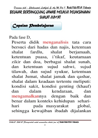 SHALAT JUM’AT [Bersegeralah untuk menunaikan shalat jum’at] Modul Fikih MTsN I Sidoarjo