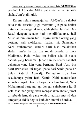sebuah masjid. Dan esoknya pada hari Jumat, Nabi