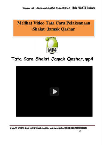 Disusun oleh : Shohimatul Luthfah,S.Ag,M.Pd.I Modul Fikih MTsN I Sidoarjo Melihat Video Tata Cara Pelaksanaan Shalat Jamak Qashar Tata Cara Shalat Jamak Qashar.mp4 SHALAT JAMAK QASHAR [Dibalik kesulitan ada kemudahan] Modul Fikih MTsN I Sidoarjo 65