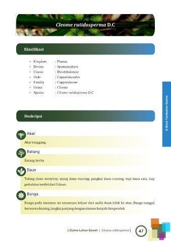 46 [ Gulma Lahan Sawah | Cyperus kylliangia ] [ Gulma Lahan Sawah | Cleome rutidosperma ] 47