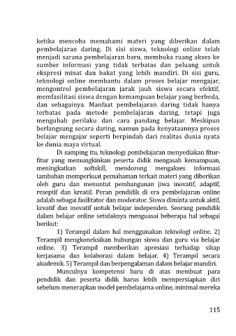 terbatas pada metode pembelajaran daring, tetapi juga