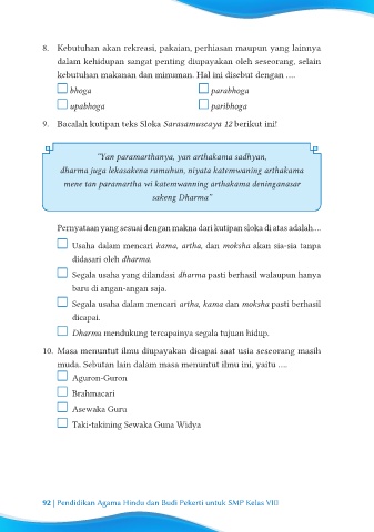 92 | Pendidikan Agama Hindu dan Budi Pekerti untuk SMP Kelas VIII