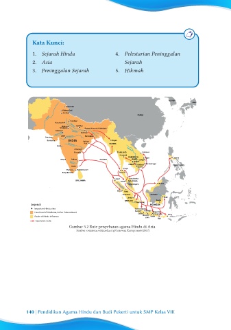 Gambar 5.2 Rute penyebaran agama Hindu di Asia
