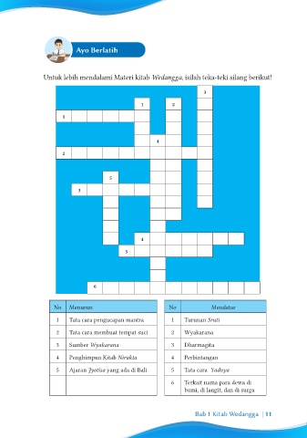 Untuk lebih mendalami Materi kitab Wedangga, isilah teka-teki silang berikut!