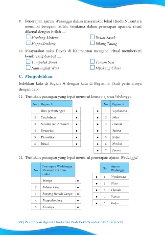 12. Tentukan pasangan yang tepat menurut penerapan ajaran Wedangga!