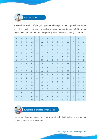 Susunlah huruf-huruf yang ada pada tabel dengan menarik garis lurus. Arah