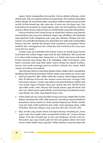 Agama Hindu mengajarkan karmaphala. Karma adalah perbuatan, phala