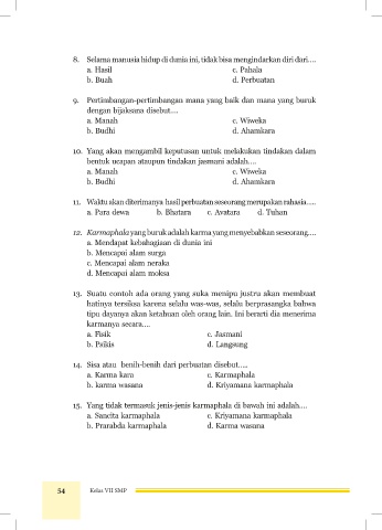 12. Karmaphala yang buruk adalah karma yang menyebabkan seseorang….