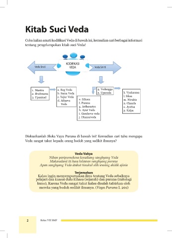 Coba kalian amati kodifikasi Veda di bawah ini, kemudian cari berbagai informasi