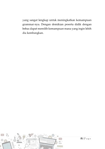 yang sangat lengkap untuk meningkatkan kemampuan grammar-nya. Dengan demikian peserta didik dengan bebas dapat memilih kemampuan mana yang ingin lebih dia kembangkan. 75 | P a g e