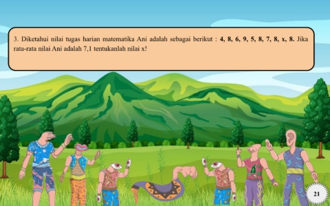 3. Diketahui nilai tugas harian matematika Ani adalah sebagai berikut : 4, 8, 6, 9, 5, 8, 7, 8, x, 8. Jika rata-rata nilai Ani adalah 7,1 tentukanlah nilai x! 21