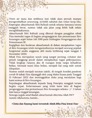 covid-19 mbak Fina dipanggil oleh yang Maha Kuasa pada Tanggal