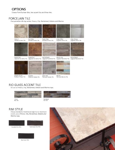 Five porcelain tile top series: Fresco, City, Reclaimed, Dakota and Marina