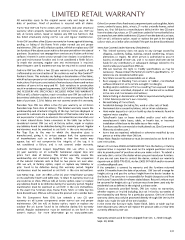 maintenance. OW Lee will, at factory option, repair or replace any In the event the furniture style, frame finish, fabric or table top has