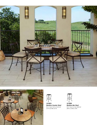 12-MCS 12-MBS Backless Counter Stool Backless Bar Stool #12-S Seat Cushion Optional #12-S Seat Cushion Optional 25”H x 15”W x 15”D 29”H x 15”W x 15”D 16